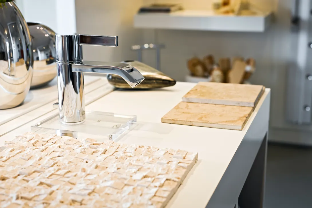 Ein Badpartner mit Anspruch bietet eine hochwertige Badausstellung, zu der auch eine große Auswahl an Fliesen und Dekoren gehört.